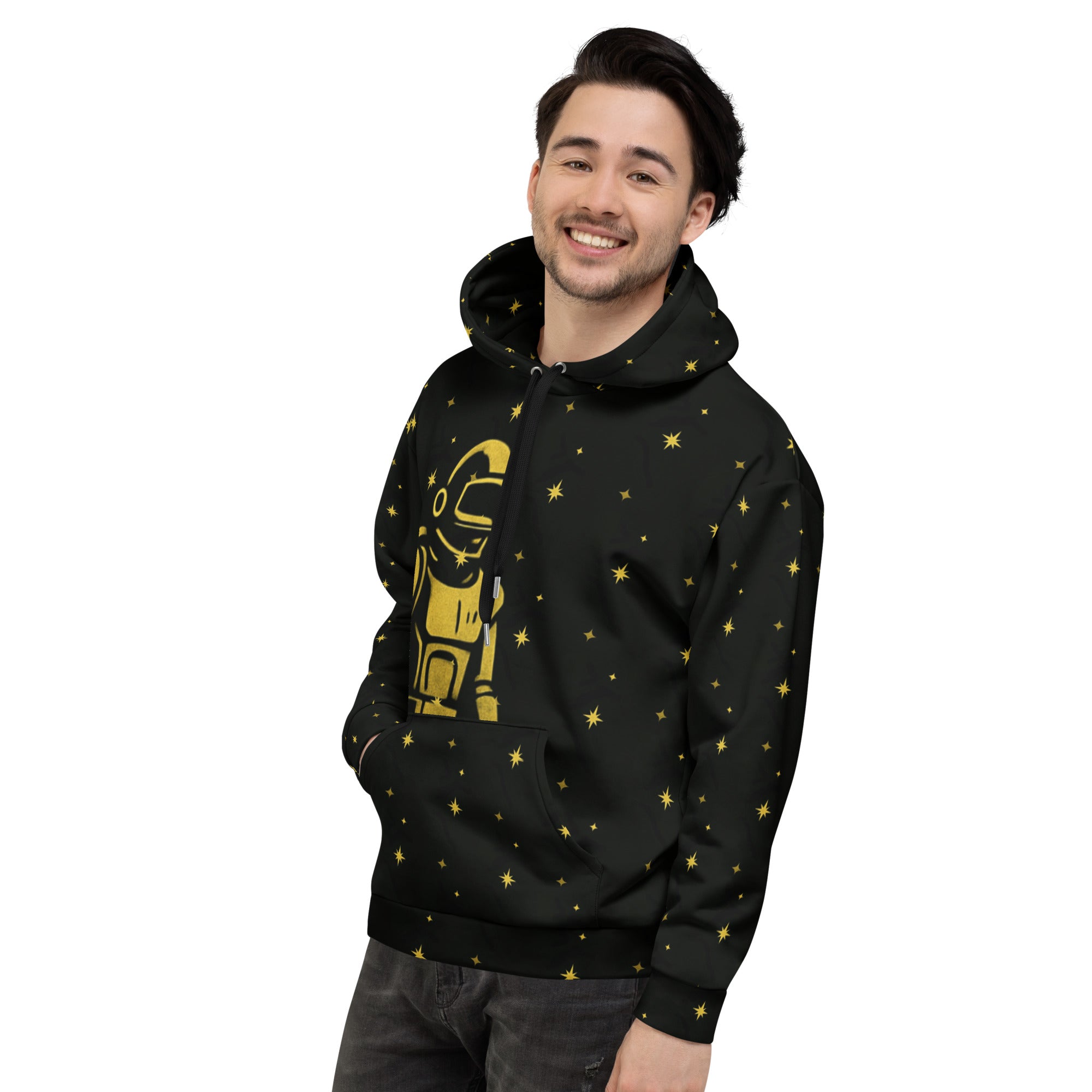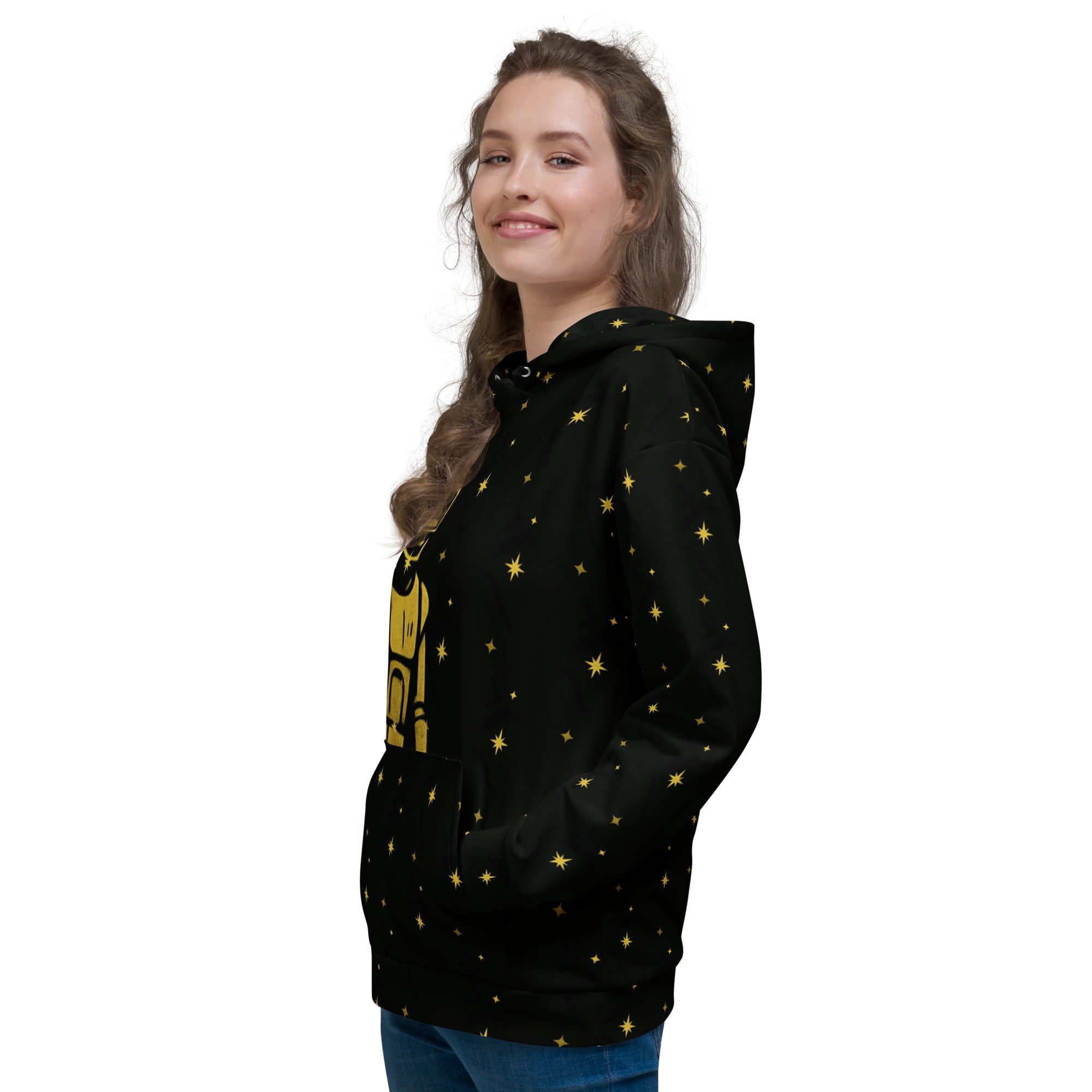 This comfy unisex hoodie has a soft outside with a vibrant print and an even softer brushed fleece inside. The hoodie has a relaxed fit, and it’s perfect for wrapping yourself into on a chilly evening.